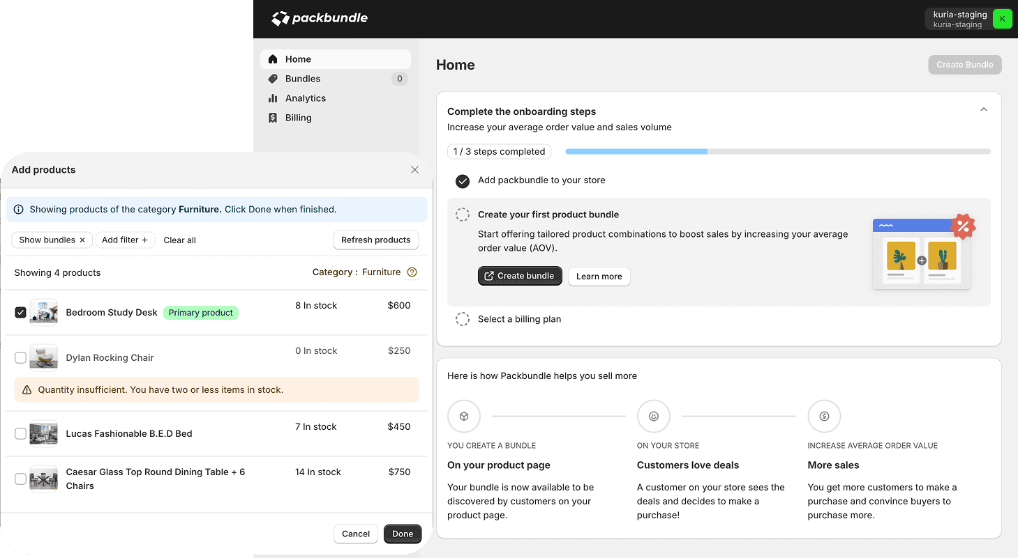 Your launchpad for bundling success with simplified inventory and order fulfillment.